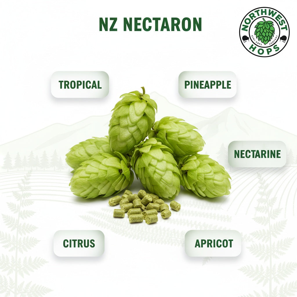 Nectaron™ is named for its “nectar” and “apricot/nectarine” punch. It’s a current favorite for breweries aiming for max fruit impact with real NZ character.