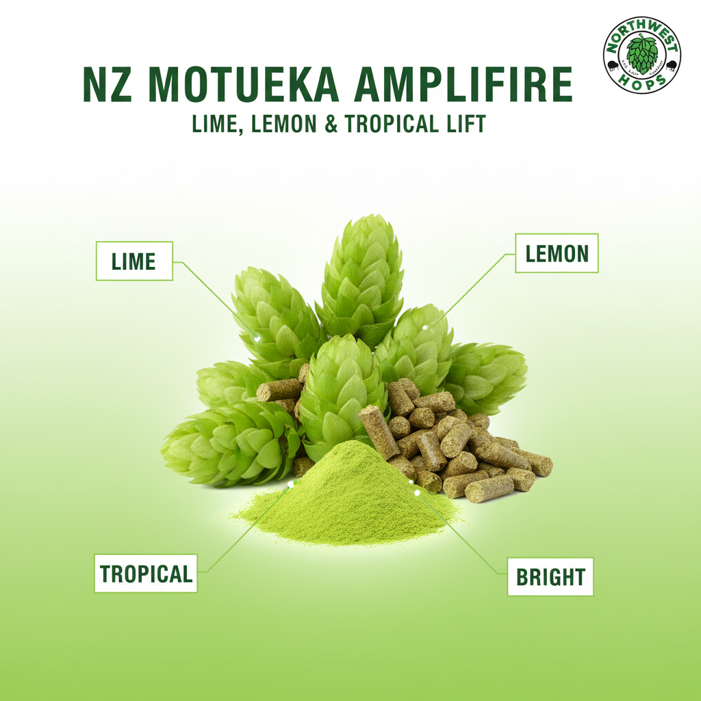 Brew bright, citrus‑driven New Zealand beers with the amplified flavour and aroma of 2024 NZ Motueka Amplifire Hop Pellets from Northwest Hops.